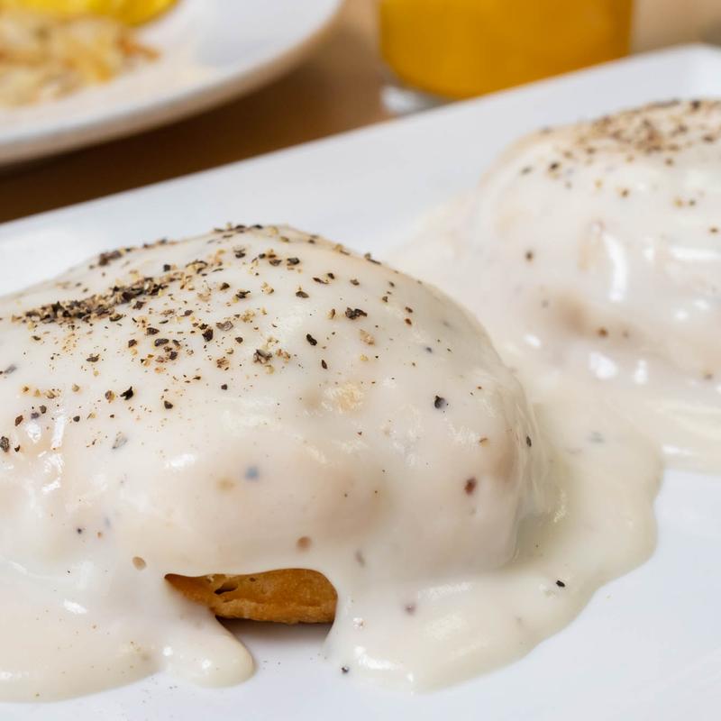 Two Biscuits withHome-Made Gravy and Two Eggs and Bacon or Sausage